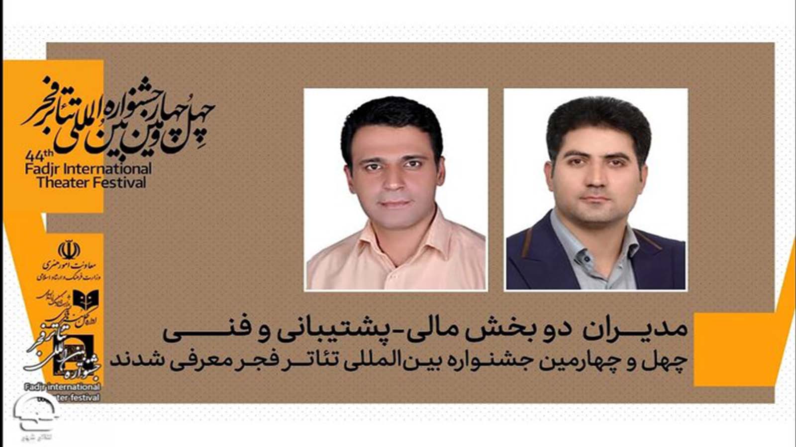 رضا ضرغامیمطلق به عنوان مدیر مالی- پشتیبانی و حسین طاهربخش به عنوان مدیر فنی چهلوچهارمین جشنواره بینالمللی تئاتر فجر معرفی شدند.