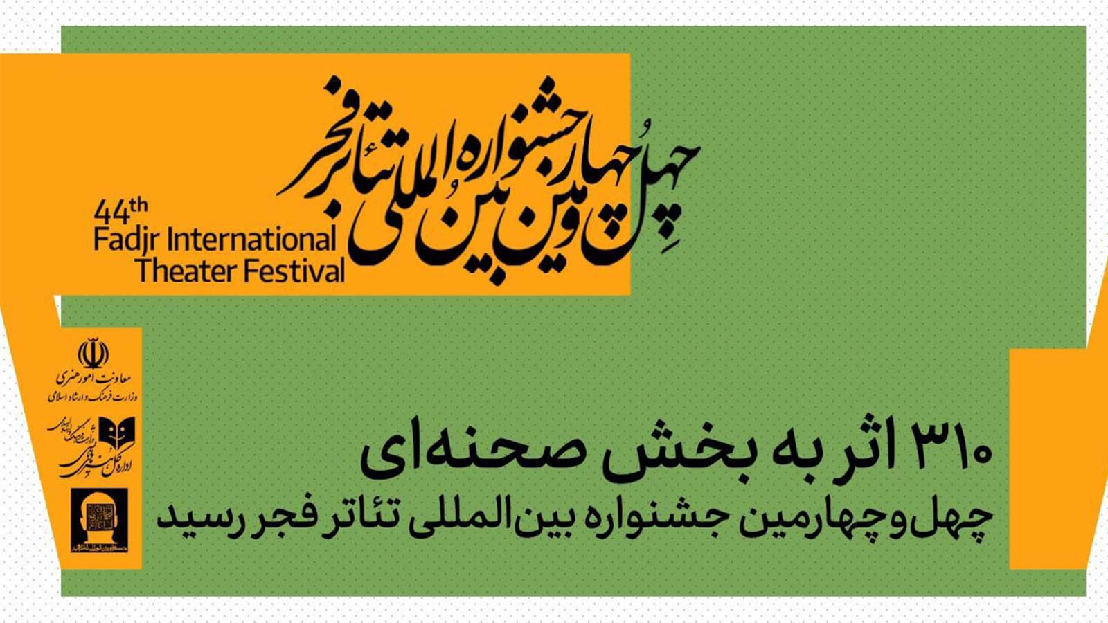 ۳۱۰ اثر نمایشی از سراسر کشور متقاضی حضور در بخش صحنهای چهلوچهارمین جشنواره بینالمللی تئاتر فجر شد.
