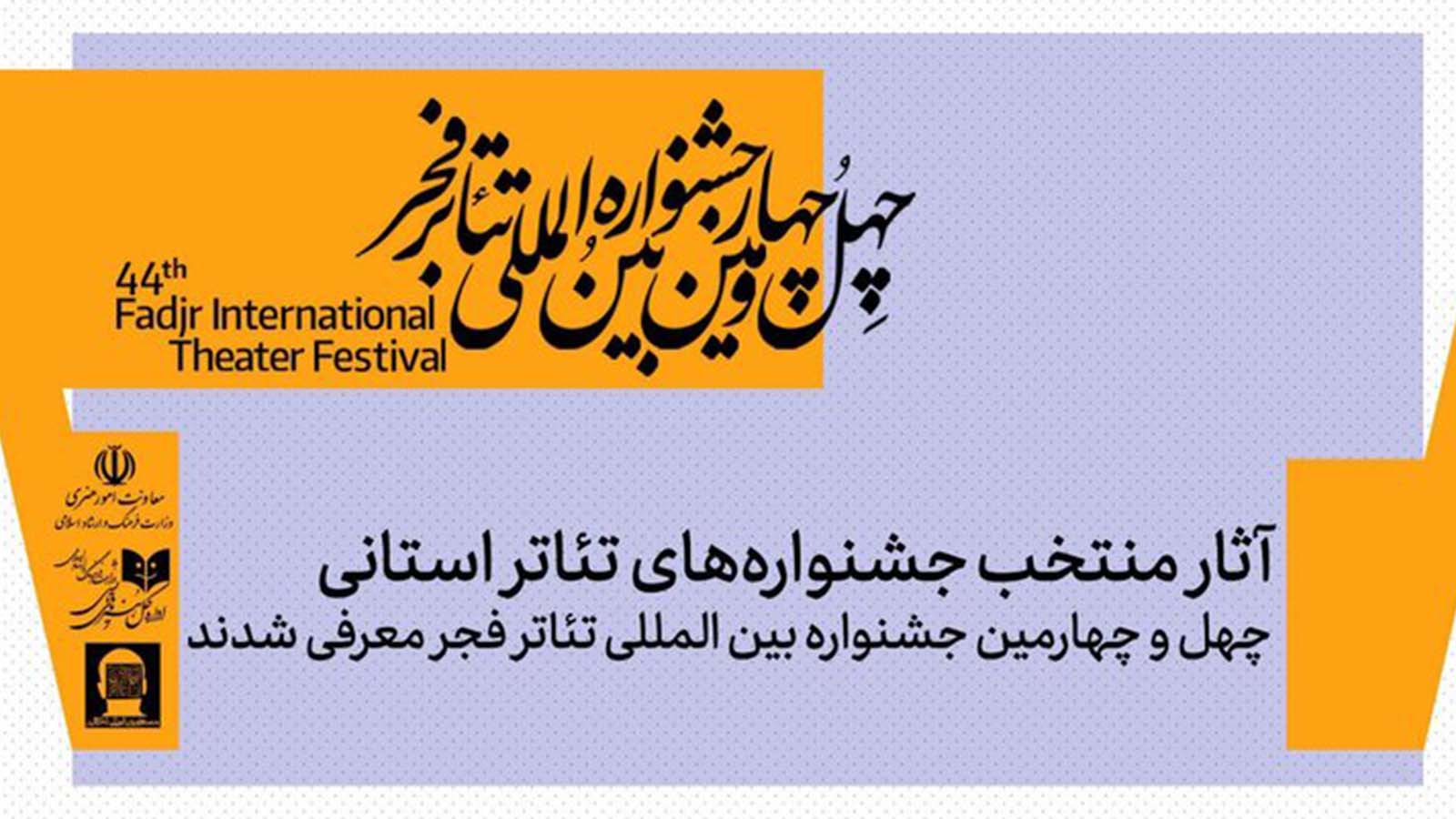 اسامی آثار منتخب جشنواره تئاتر استانی چهل و چهارمین جشنواره بینالمللی تئاتر فجر از سوی دبیرخانه این رویداد هنری اعلام شد.